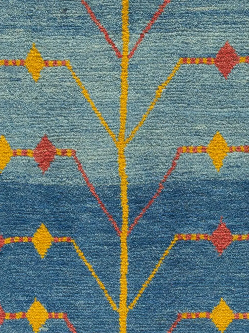 . Die Schur ist relativ hoch, der Griff fest. Die Muster sind meist schlicht oder eine Kombination mit traditionellen Mustern. Mustervorlagen gibt es nicht. Geknüpft werden alle Muster aus dem Kopf.| Gesamthöhe: | ca. 18 mm |
