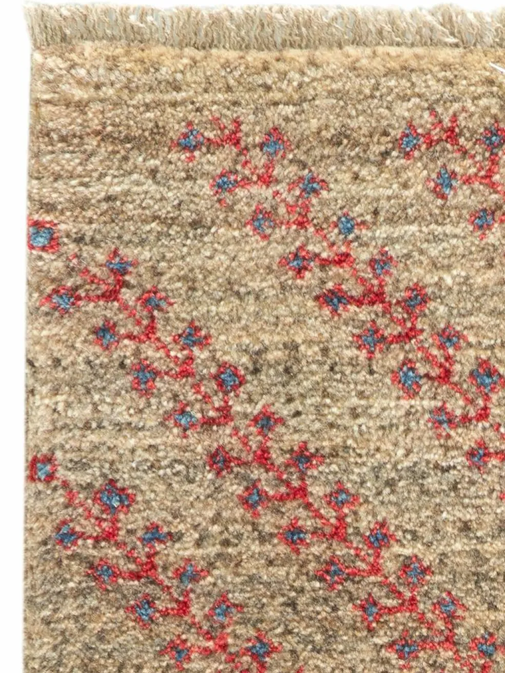 . Die Schur ist relativ hoch, der Griff fest. Die Muster sind meist schlicht oder eine Kombination mit traditionellen Mustern. Mustervorlagen gibt es nicht. Geknüpft werden alle Muster aus dem Kopf.| Gesamthöhe: | ca. 18 mm |