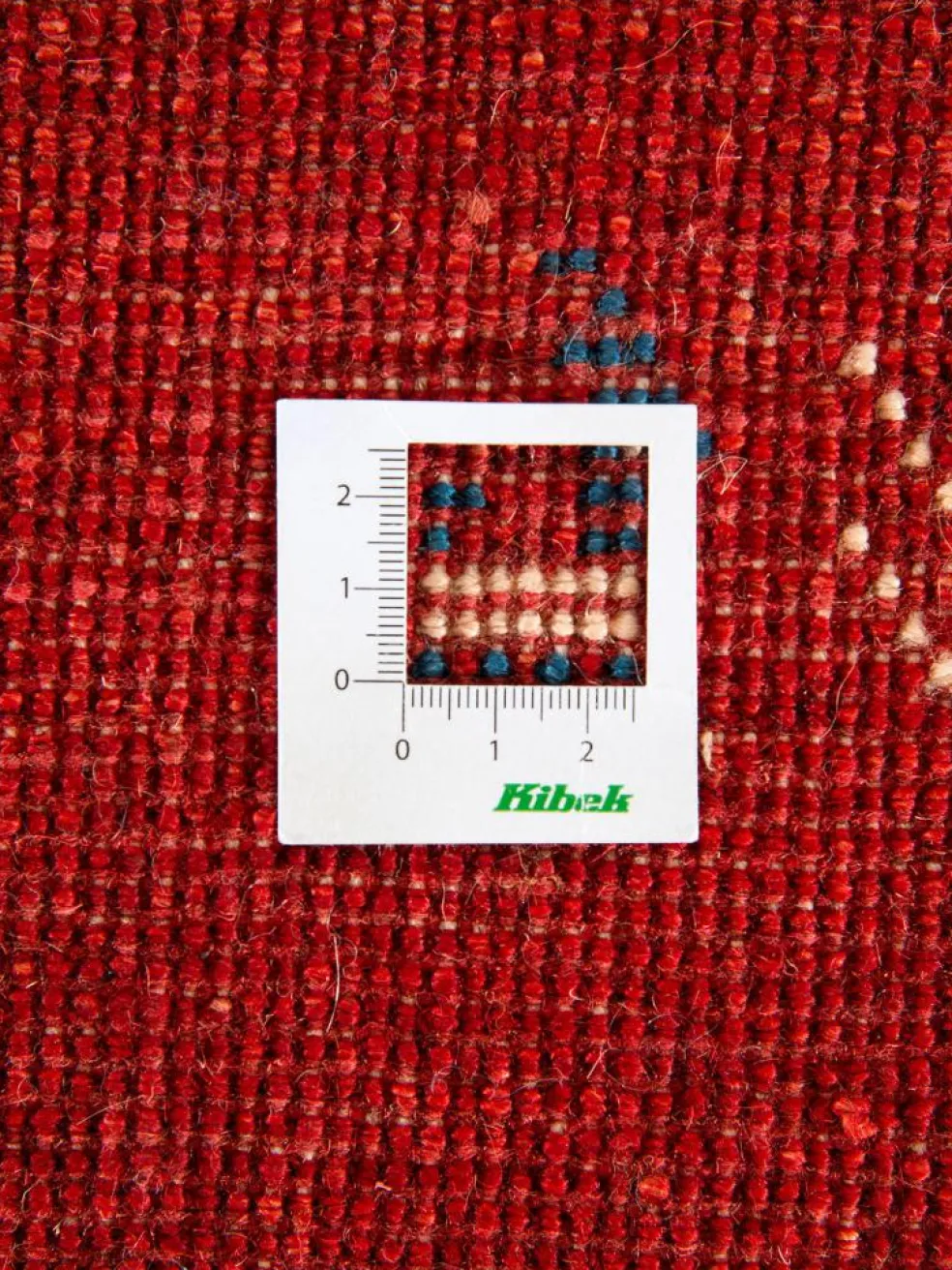. Die Schur ist relativ hoch, der Griff fest. Die Muster sind meist schlicht oder eine Kombination mit traditionellen Mustern. Mustervorlagen gibt es nicht. Geknüpft werden alle Muster aus dem Kopf.| Gesamthöhe: | ca. 18 mm |