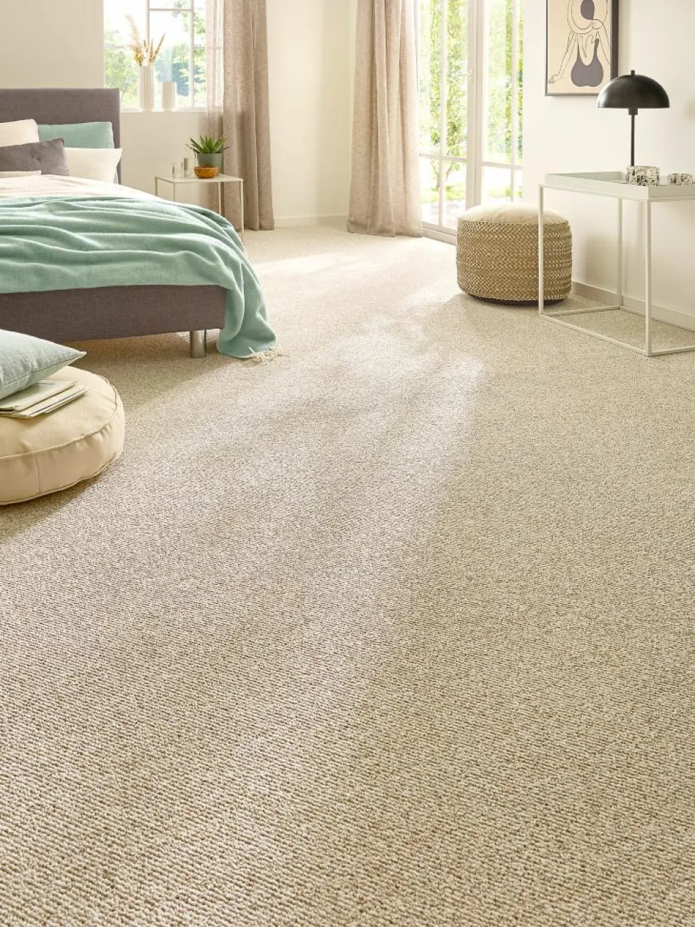 Die Oberflächenstruktur und die ausgewählte Farbgebung verleihen diesem Schlingen-Teppichboden die natürliche Ästhetik. Der Flor ist aus einer pflegeleichten und strapazierfähigen Spezialfaser. Zum hervorragenden Wohnkomfort trägt auch der KIBEK-ComforTex-Vliesrücken bei. Antistatisch ausgerüstet und für Fußbodenheizung geeignet.