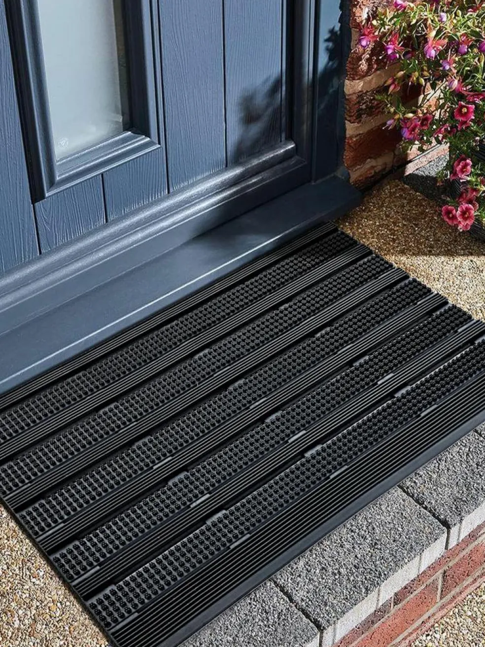 Damit der Dreck draußen bleibt: Unsere profilierte Gummimatte Profine ist die ideale Fußmatte für den Außenbereich. Die Kombination aus Gumminoppen und Gummiborsten entfernt mühelos den Schmutz aus der Schuhsohle. Durch ihr hohes Gewicht von ca. 3.300 g bleibt sie auch bei starker Belastung immer an Ort und Stelle.