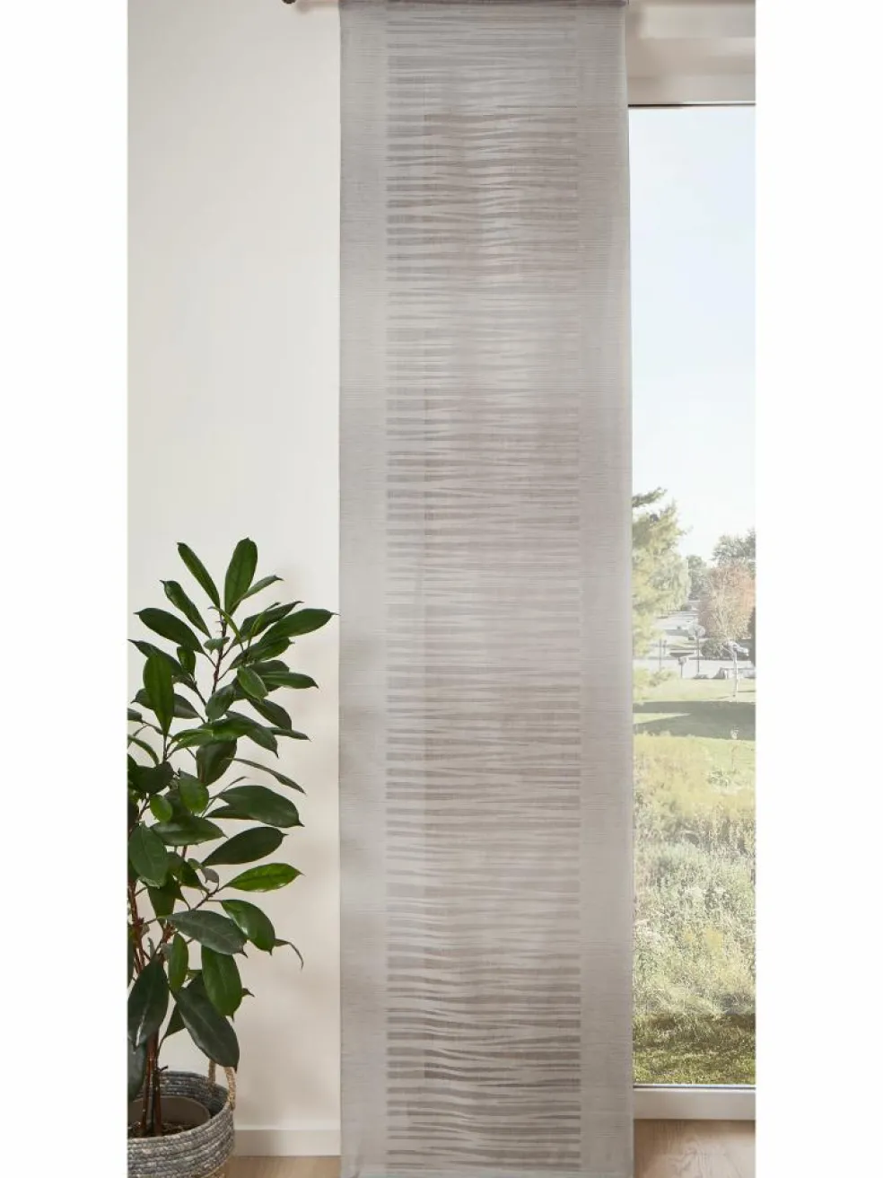 Quera ist ein leicht transparenter Flächernvorhang, der in jedem Raum eine tolle Atmosphäre schafft. Mit seinem markanten Muster in schlichten Farben ist er ein besonderes Highlight, das sich mühelos mit den unterschiedlichsten Einrichtungsstilen kombinieren lässt. Hergestellt aus 100 % Polyester. Waschbar bei bis zu 30 °C. Paket enthält je einen Vorhang.
