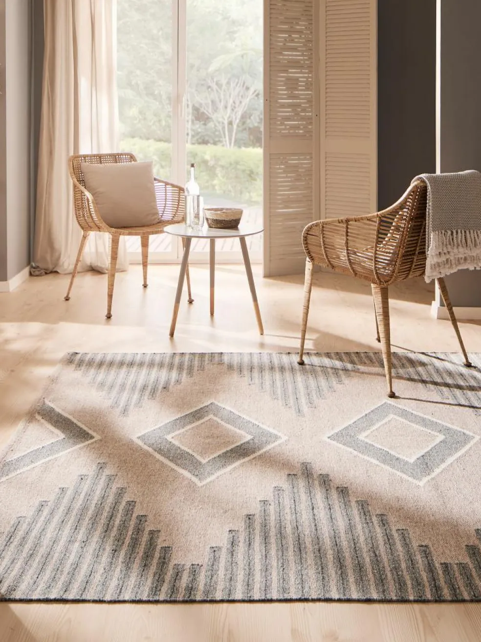 , Polyester und Baumwolle ist Ruda nicht nur optisch ein Highlight, sondern auch strapazierfähig und pflegeleicht. Teppiche mit Schurwoll-Anteil können einen typischen Eigengeruch haben. Bei regelmäßigem Lüften verfliegt dieser Geruch nach einigen Tagen.| Eigenschaften: | für Fußbodenheizung geeignet |