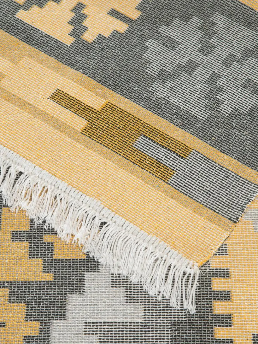 -Design ist weiterhin sehr beliebt und versprüht Ethno-Flair. Die moderne Farb-Kombination aus Gelb- und Grau-Tönen macht Sakatah daher zu einem besonderen Eye-Catcher, der vielseitig einsetzbar ist. Sakatah ist beidseitig verwendbar und dank seiner besonderen Material-Kombination aus Baumwolle, Polyester und Acryl sogar bei bis zu 30° C waschbar.| Eigenschaften: | für Fußbodenheizung geeignet |