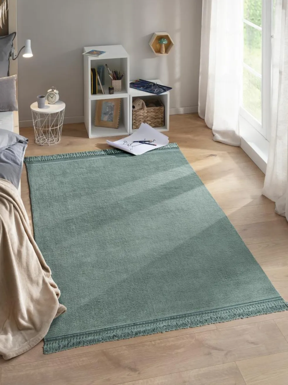 Sandby bietet den idealen Rückzugsort zum Spielen und Ausruhen. Der einfarbige, getuftete Kinderteppich aus 100 % Baumwolle ist eine kuschelig-weiche Spielunterlage, die mühelos zu den verschiedensten Einrichtungsstilen passt. Die farblich passende Streifen-Kante und die modischen