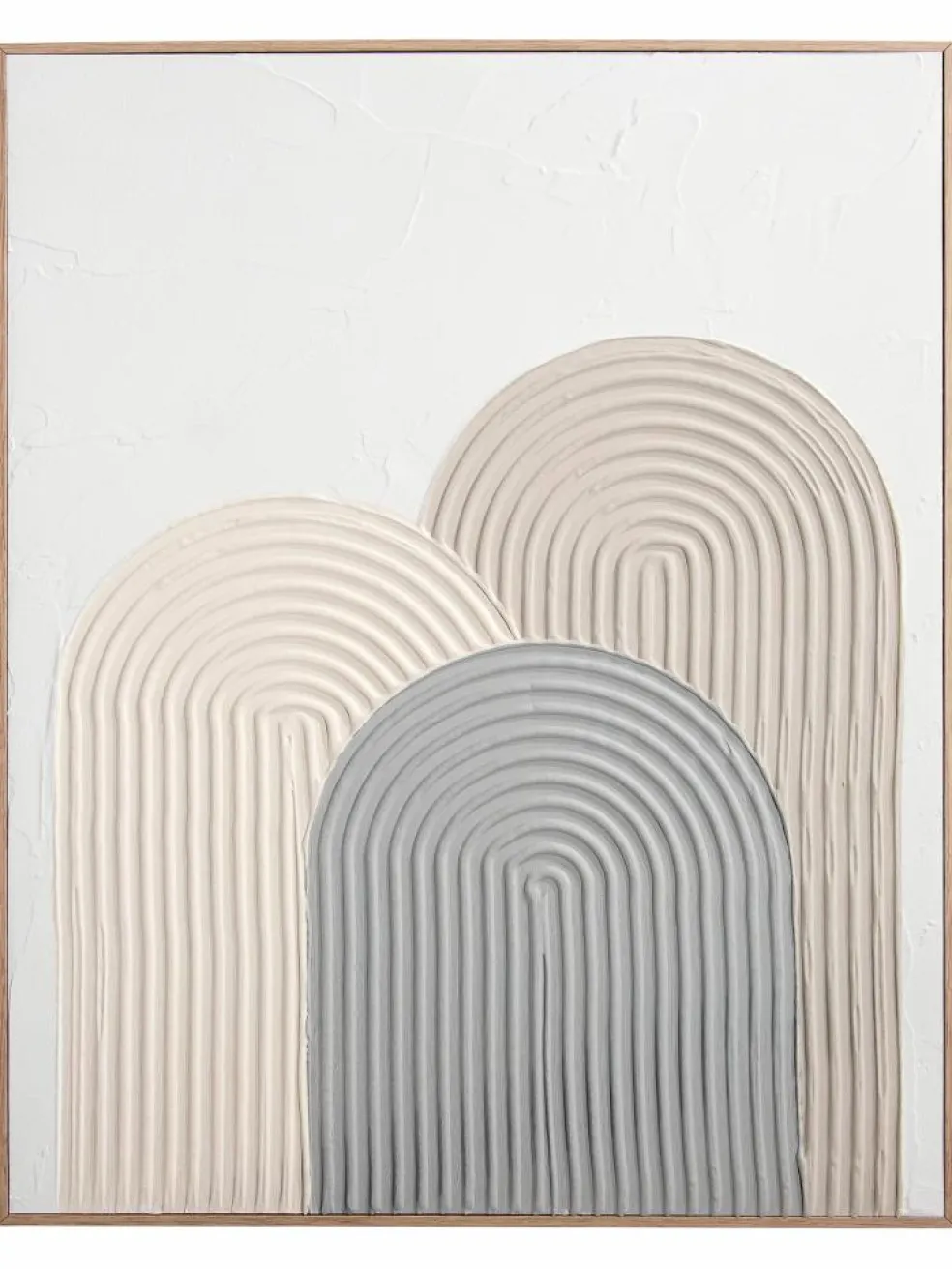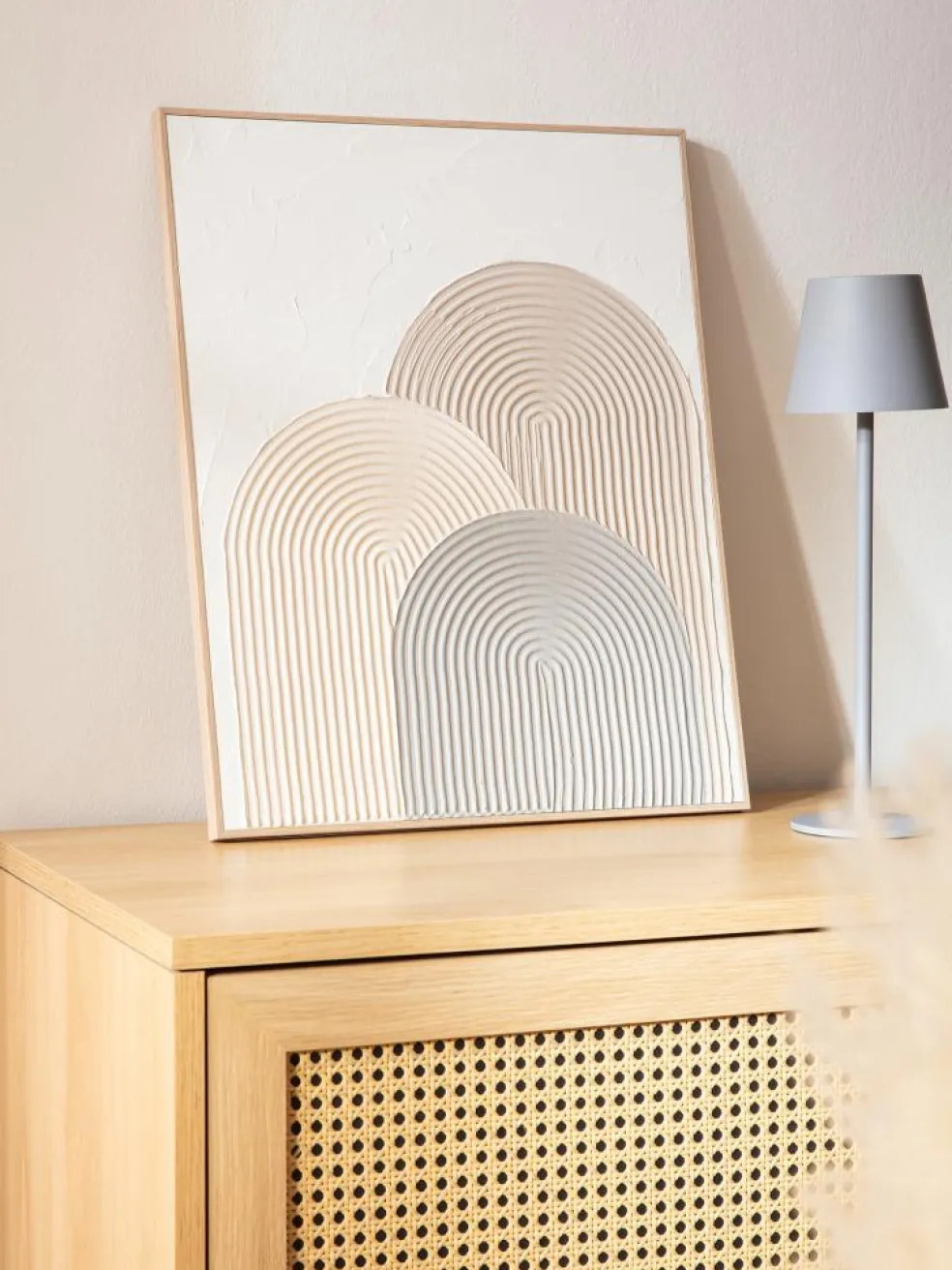 Sandviks skandinavischer Stil passt in die verschiedensten modernen Einrichtungsstile. Das handgefertigte Relief in natürlichen Farben wird von einem schlichten Holzrahmen umrandet. Die besondere 3D-Textur ist auch haptisch spürbar.