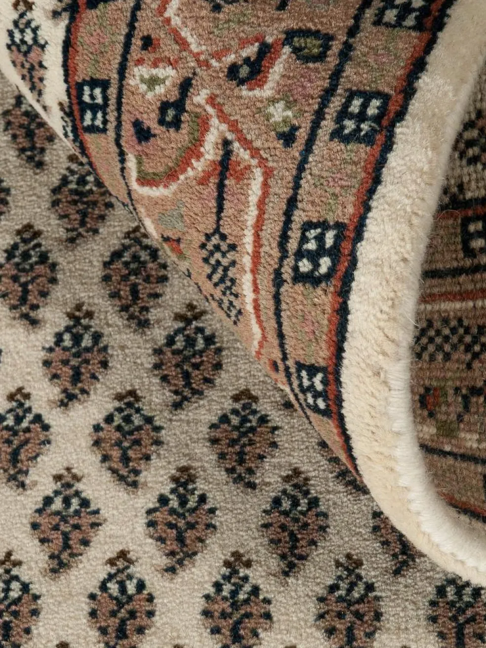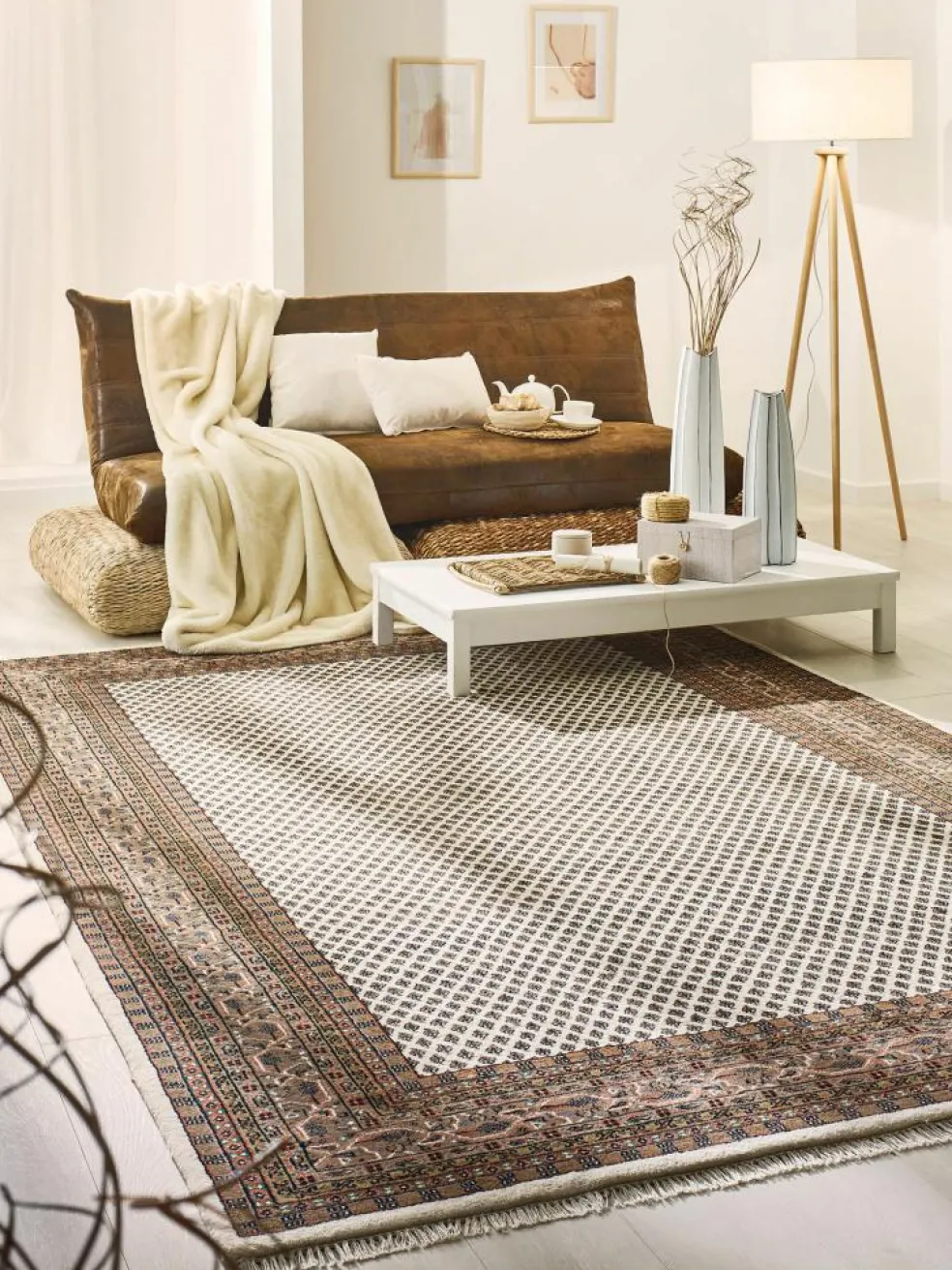 mit ca. 125.000 Knoten pro m². Hohe Strapazierfähigkeit und Langlebigkeit. In vielen Größen lieferbar. Wenn der Teppich nicht mehr als 50 % des Fußbodens eines Raumes bedeckt, ist er für Fußbodenheizung geeignet. Mit flacher Düse staubsaugen.| Art: | Orient-Teppich |