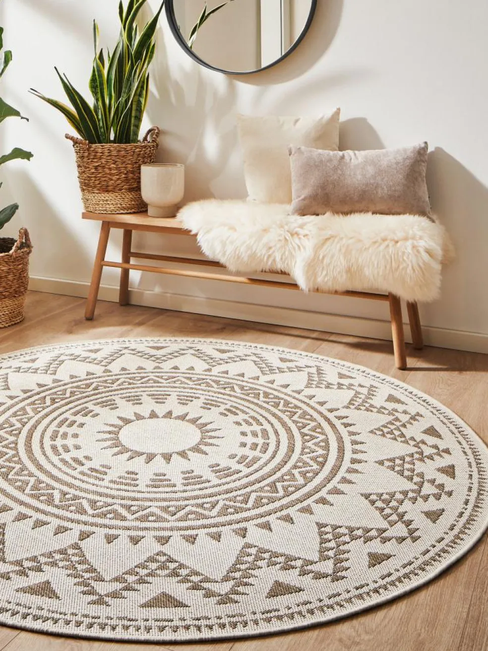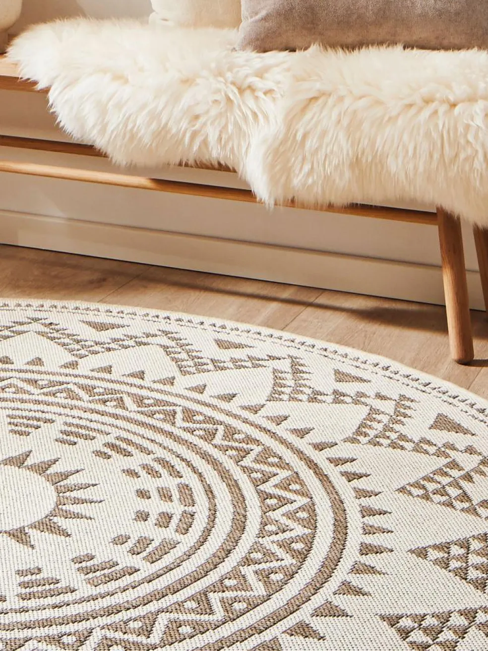 Dieser Teppich ist für das Wohnzimmer genauso geeignet wie für die Terrasse. Leicht zu pflegen.