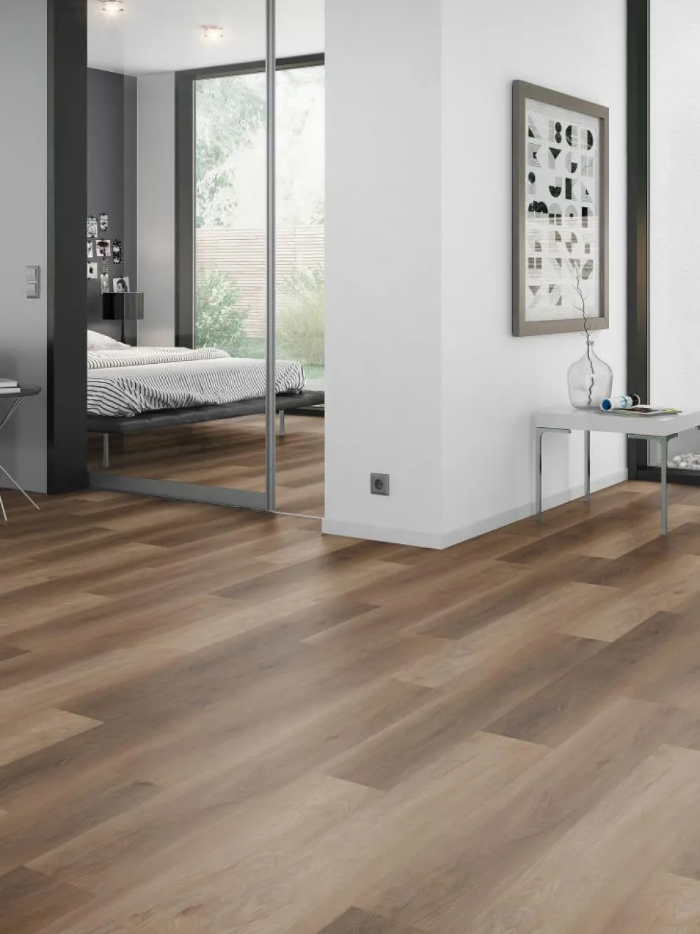 Der ultimative Trend-Belag. Profi-Design-Bodenbelag zur vollflächigen Verklebung mit sehr geringer Aufbauhöhe. Extrem belastbar. Ceramic-PU-Beschichtung. Hohe Nutzschicht von 0,55 mm. Ideal für Küche und Bad einsetzbar. 25 Jahre Garantie im Wohnbereich und 10 Jahre Garantie im Arbeitsbereich. Maße ca. 18 x 122 cm.