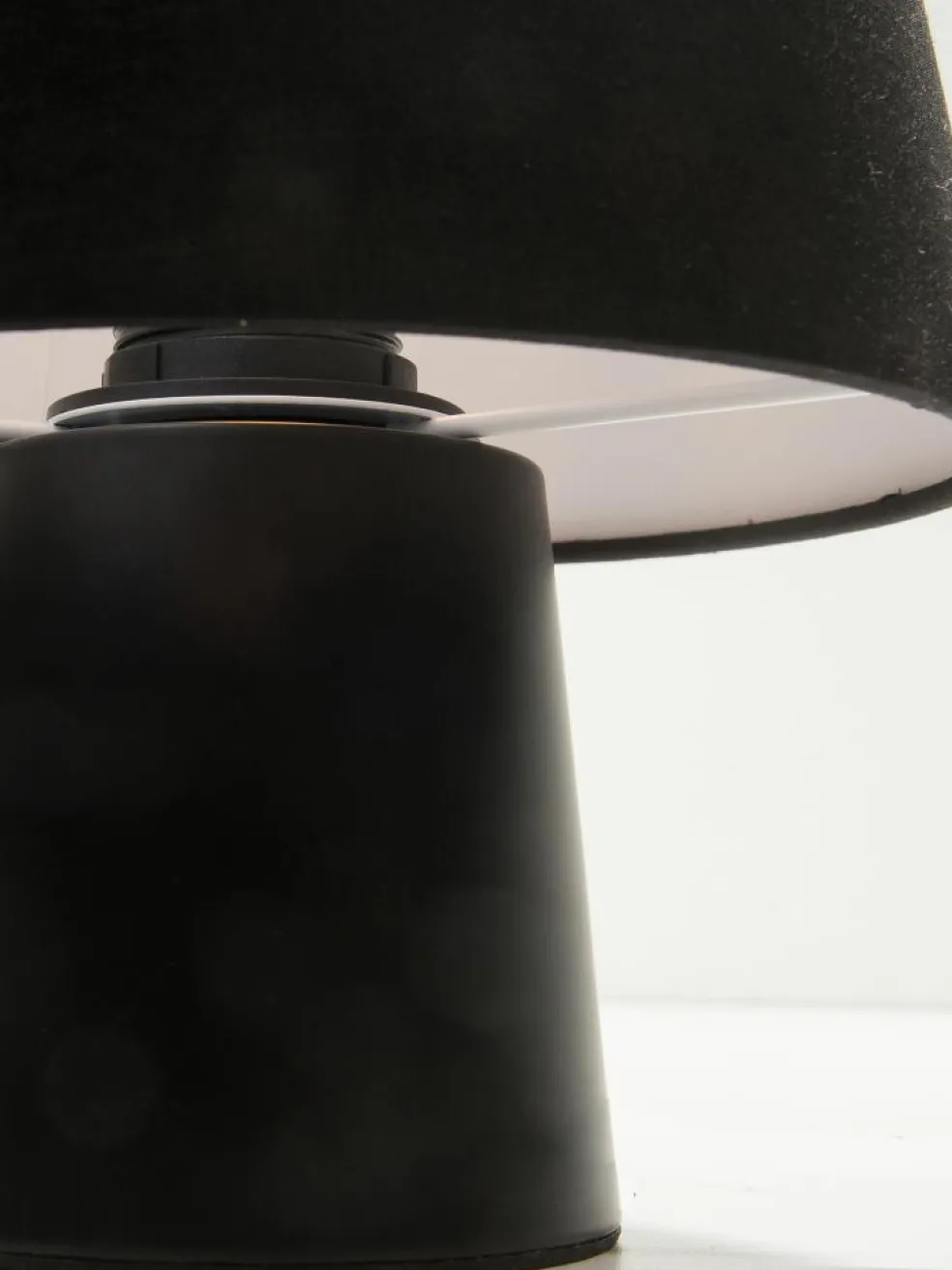 Wunderschöne Tischleuchte mit einem Lampenfuß aus Metall. Der Textil-Lampenschirm ist farblich passend zum Fuß. Die Leuchte ist über 3-Stufen-Touch dimmbar. Schwarzes Stoffkabel (1,5 m). E27 Fassung exklusive Leuchtmittel.