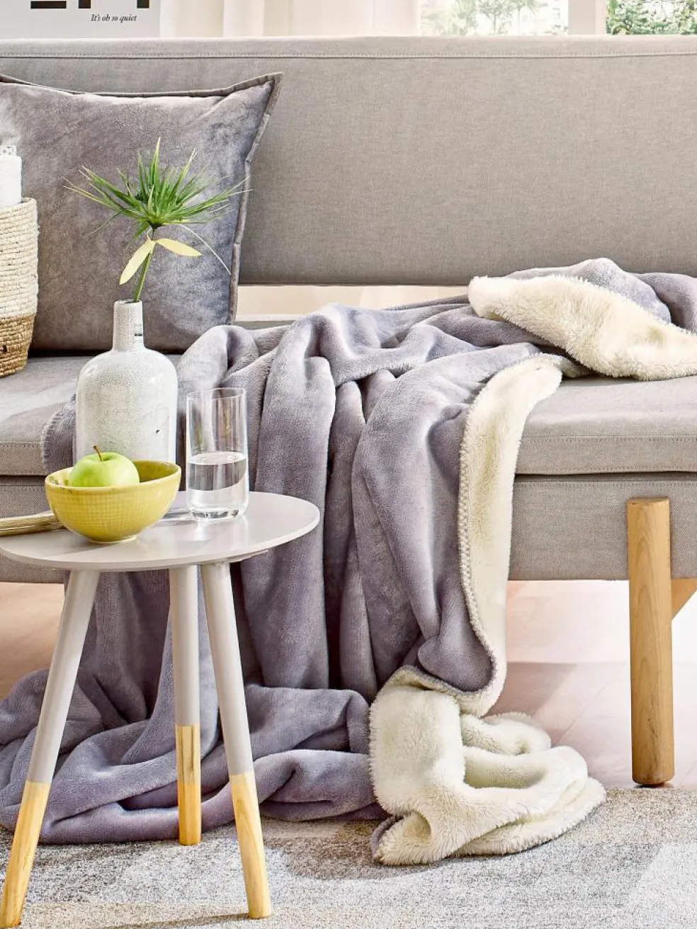 Die dekorative Wendedecke schafft wirklich schnell Behaglichkeit. Außen ist sie aus samtweichen Flanell und innen aus supersoftem Fellplüsch. Die Trendfarben haben wir auf unsere erfolgreichen Kissen Lula abgestimmt.