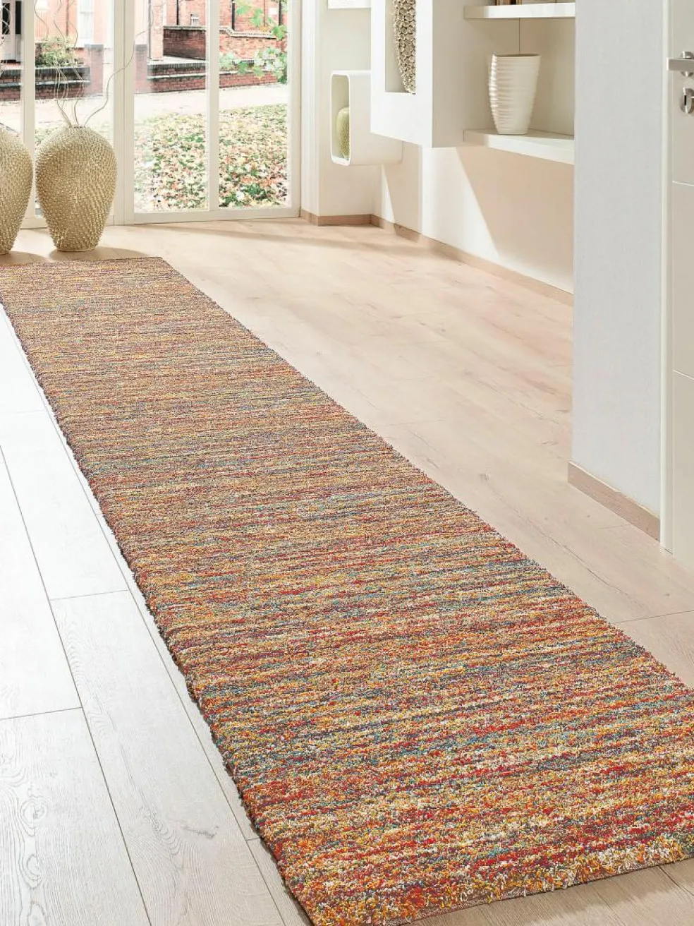 -Verfahren veredelt: Das macht die Fasern besonders belastbar und formstabil – kein Plattlaufen, das fluffige Kräuselgarn richtet sich immer wieder auf. Gedeckte Erd- und Beerentönehaben wir in unterschiedlichen Anteilen miteinander kombiniert.Gesamtgewicht ca. 3200 g pro m² und ca. 106.000 Noppen pro m²,Gesamthöhe ca. 30 mm. Flormaterial 100 % Polypropylen, TrägermaterialJute, antistatisch, Oeko-Tex Standard 100.Die Schnittkanten werden mit passendem Garn umkettelt.| Art: | Läufer |