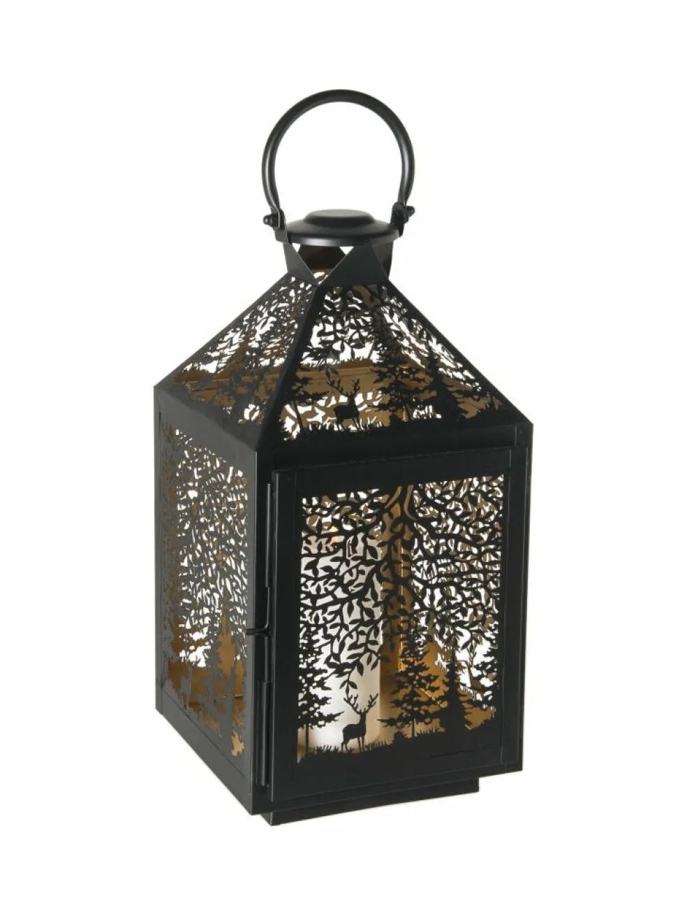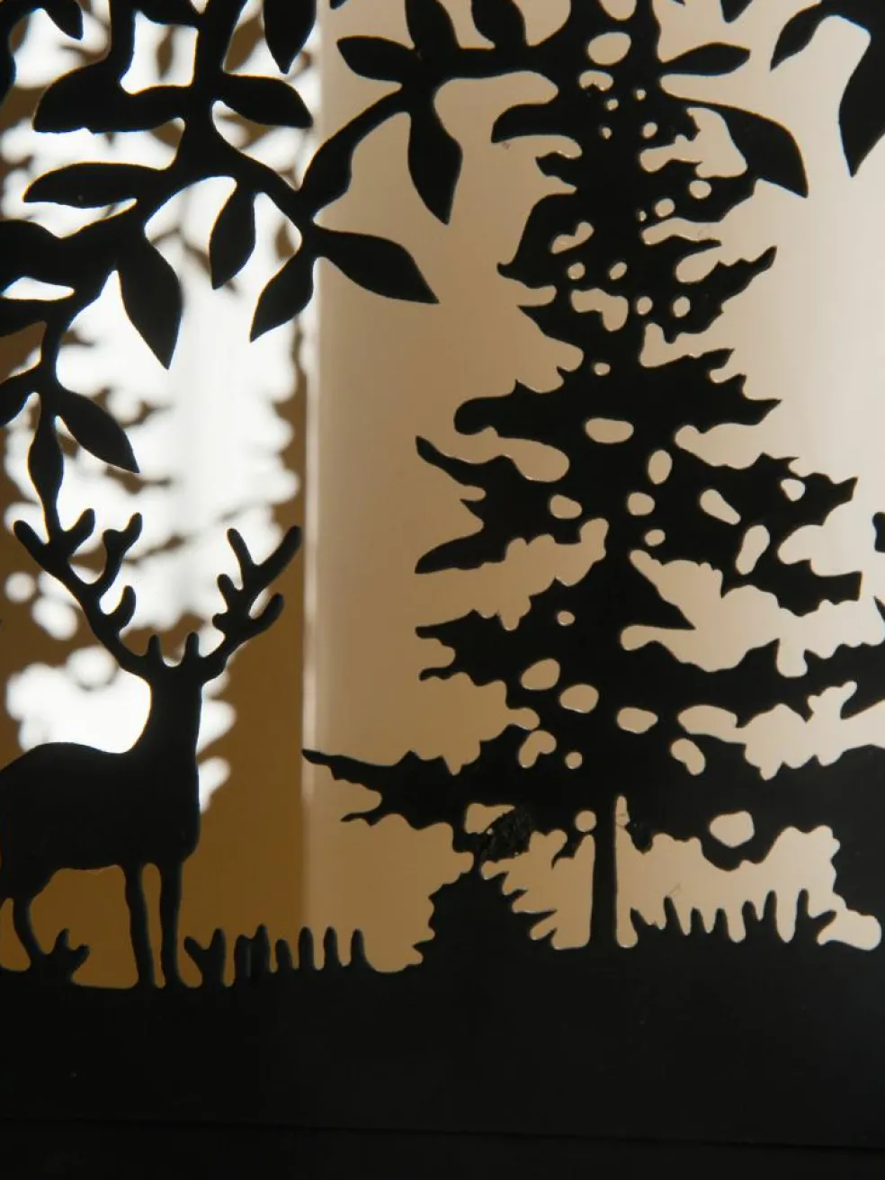 Es wird winterlich mit unserer Laterne Telfs. Das filigran ausgestanzte Metall zeigt eine winterliche Landschaft. Die goldfarbene Beschichtung im Inneren verteilt das Kerzenlicht auf eine besondere Weise und sorgt so für eine gemütliche Atmosphäre.