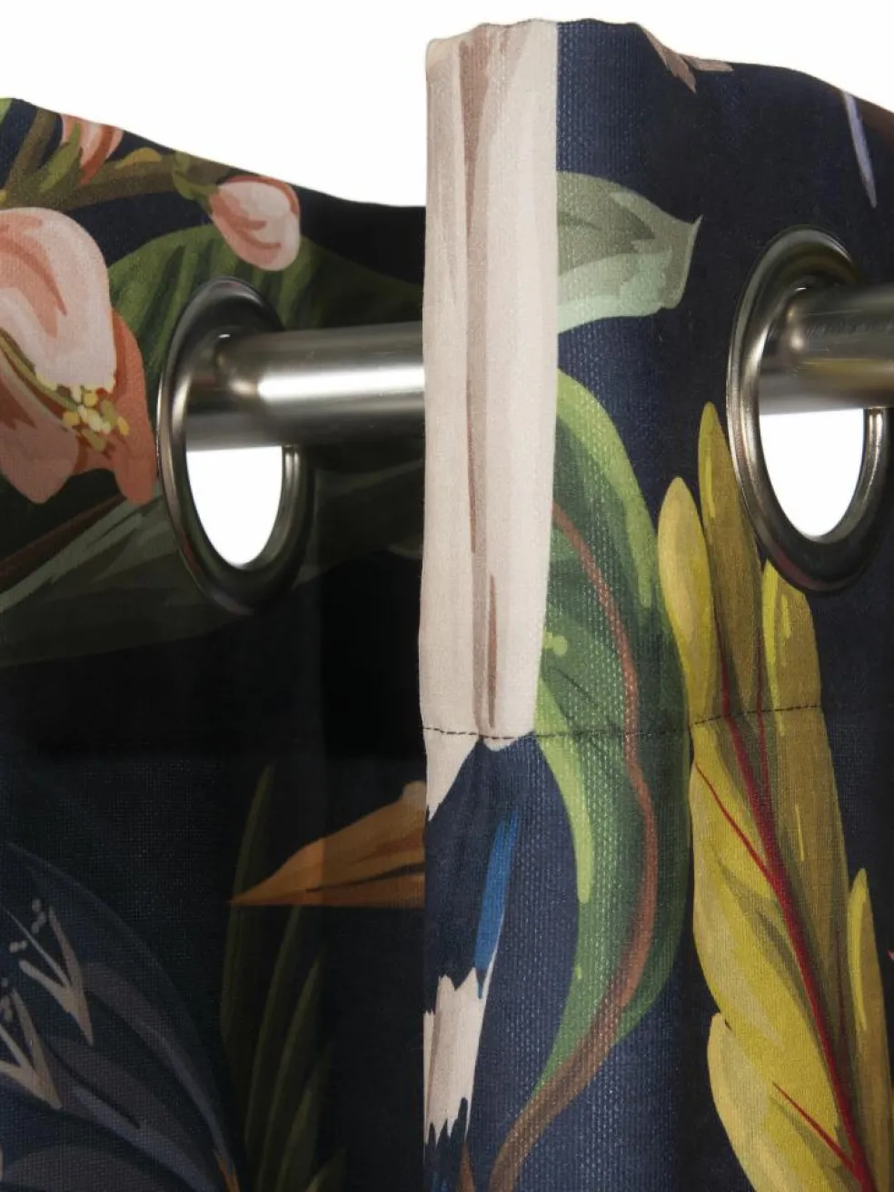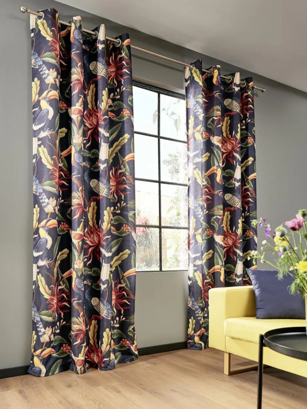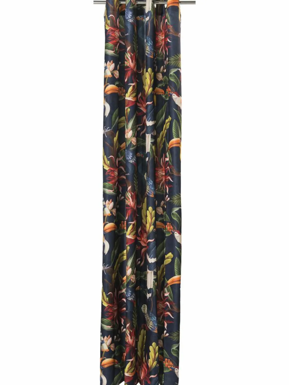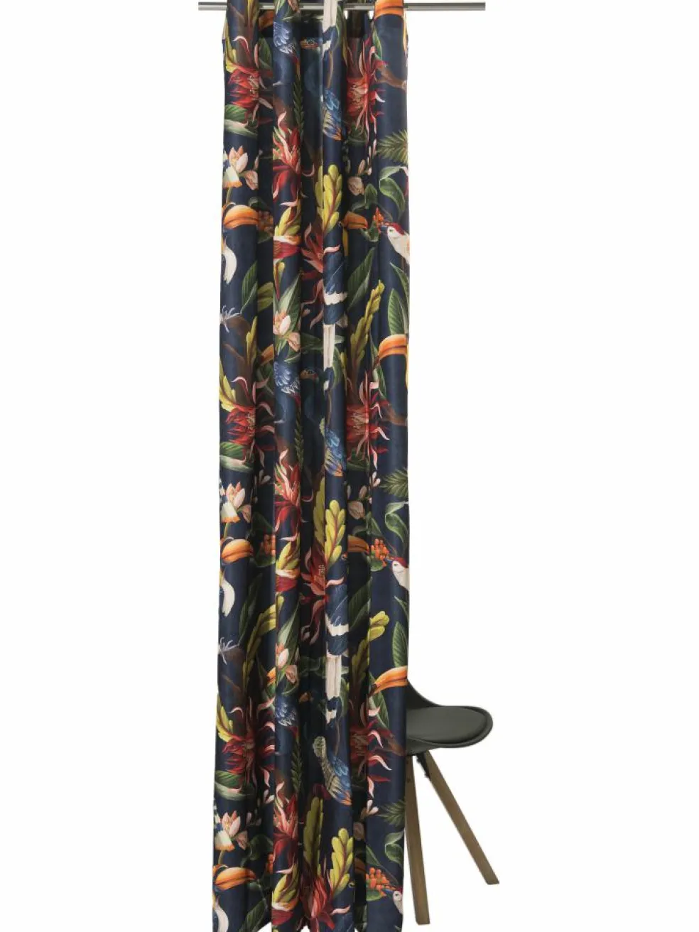 Welcome to the Jungle! Dieser Fertigschal mit silbernen Ösen ist ein absoluter Eye-Catcher. Das ausdrucksstarke Dschungel-Muster auf dunklem Hintergrund ist ein Trendprodukt für Fans der maximalistischen Einrichtung. Dieser Vorhang ist nicht transparent und kann den Wohnraum entsprechend abdunkeln. Tucani ist aus 100 % Polyester (PES) hergestellt, ist pflegeleicht und bei 30 °C waschbar. Paket enthält je einen Ösenschal.