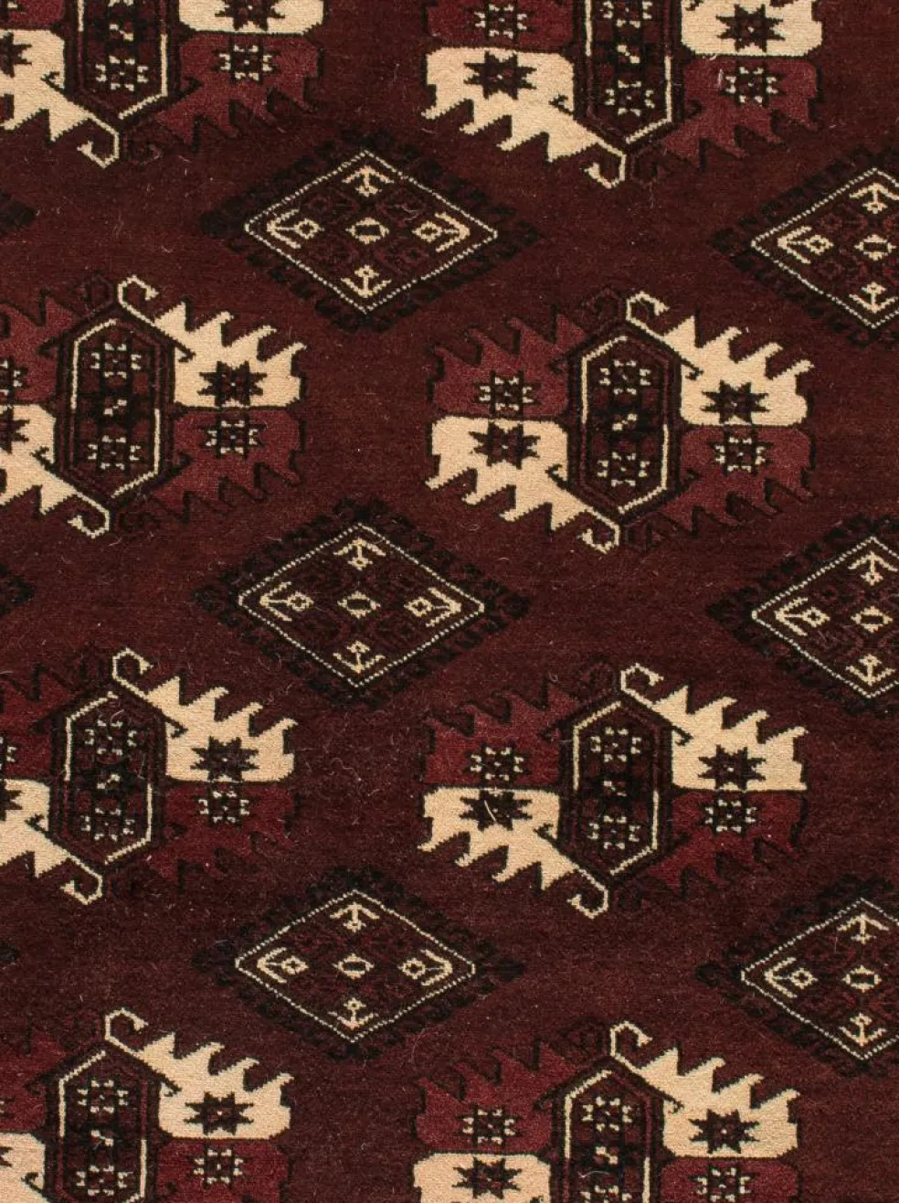 Die Volsgruppe der Turkmenen setzt sich aus einer Vielzahl von Stämmen zusammen. Berühmt wurden sie durch ihre Teppichknüpfkunst. Typisches Hauptmotiv ist das jeweilige Stammeszeichen, das sogenannte