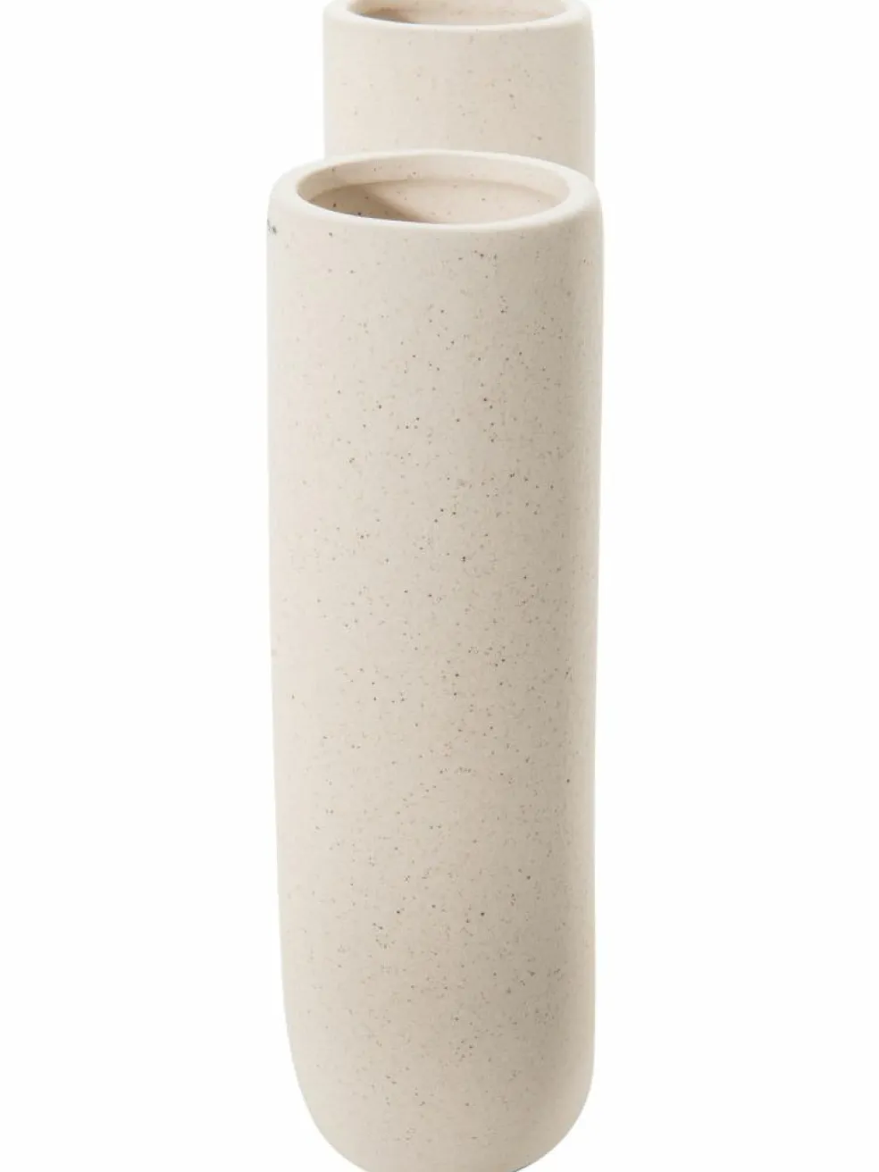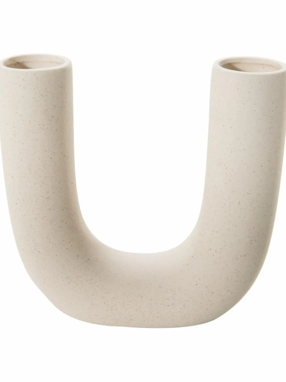 Vase aus Hochtemperatur-Steinzeug in künstlerisch gestalteter Form mit doppelter Öffnung. Wasserdicht.