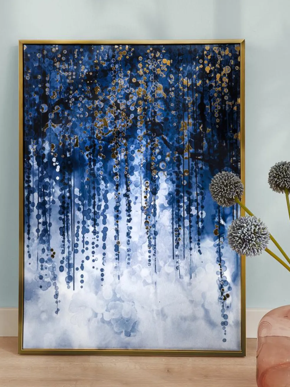 Dieses Giclée setzt mit seiner detailreichen Gestaltung und den partiellen Goldfolien-Akzenten edle Highlights. Die goldfarbene Bilderrahmen-Leiste aus Polyschaumkunststoffmaterial verleiht dem Kunstwerk eine elegante Note und macht es zu einem stilvollen Blickfang.