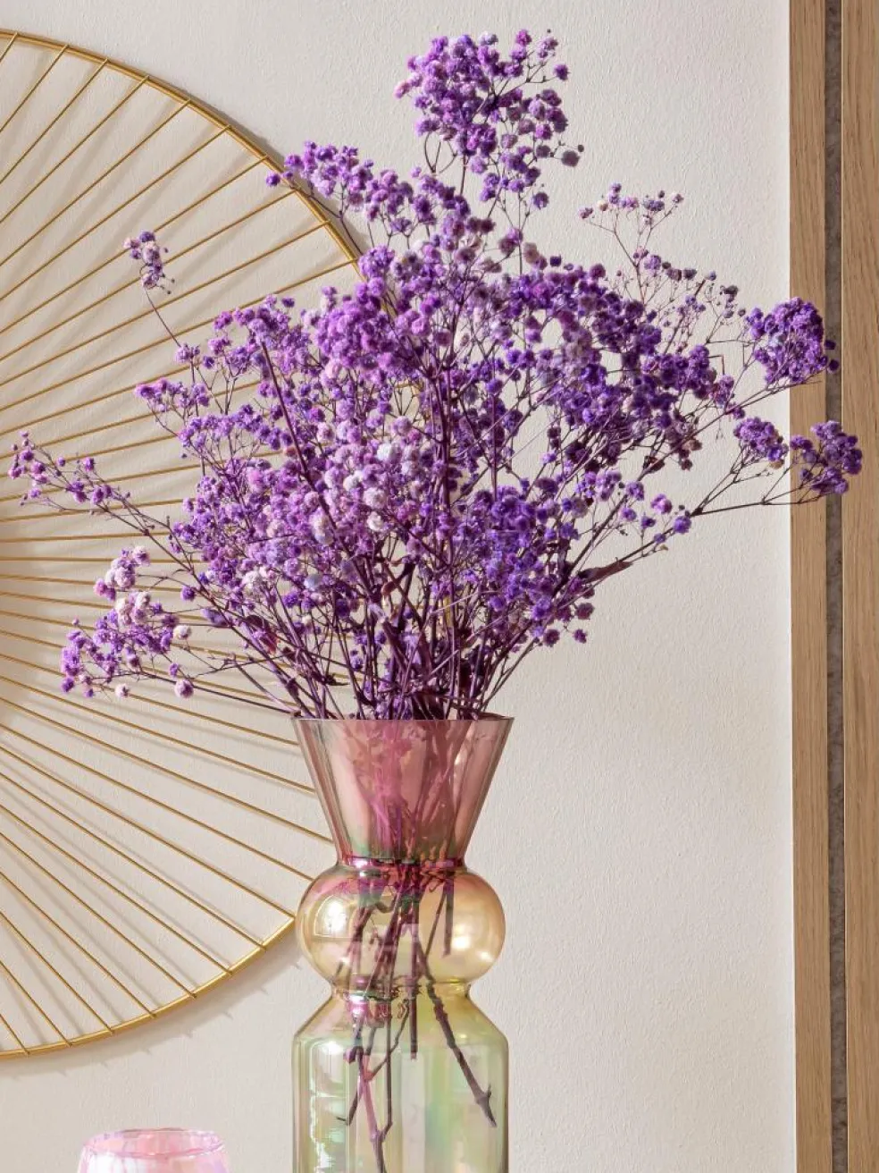 Das Schleierkraut ist sehr langlebig und setzt durch das moderne Violett schöne farbliche Akzente im Raum.